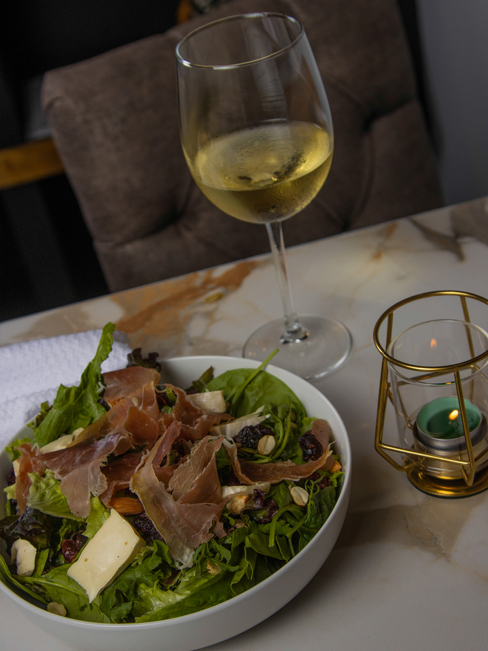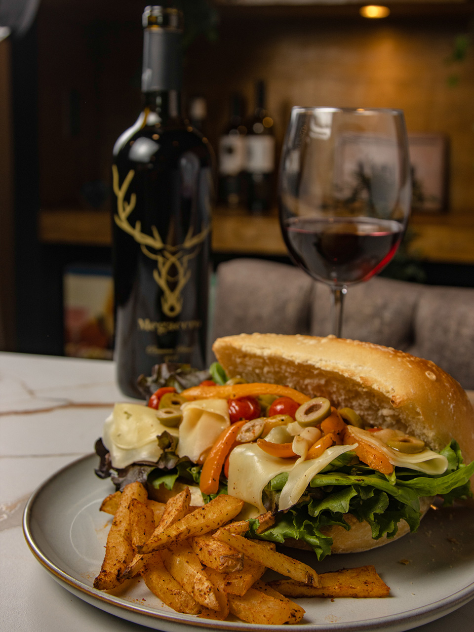 Contamos con una gran lista de Vinos y una Carta de Alimentos que van desde tablas de quesos y carnes frías, productos gourmet, ensaladas, chapatas, snack´s, postres, cafés, té y tisanas, hasta chocolates y puros.